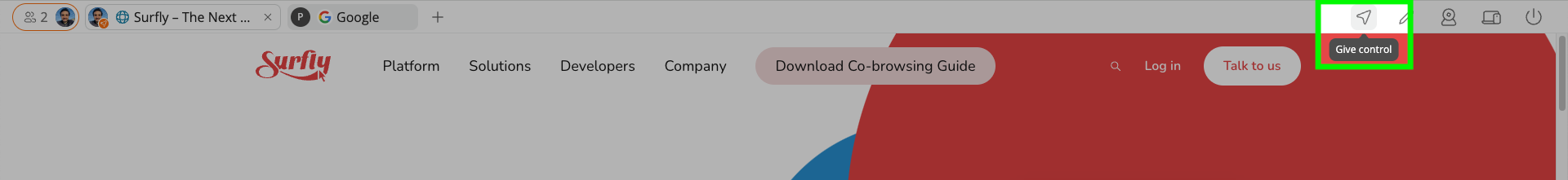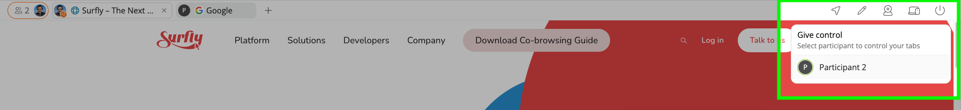The owner of an active tab can transfer control to any session participant using the Control button (Cursor icon).