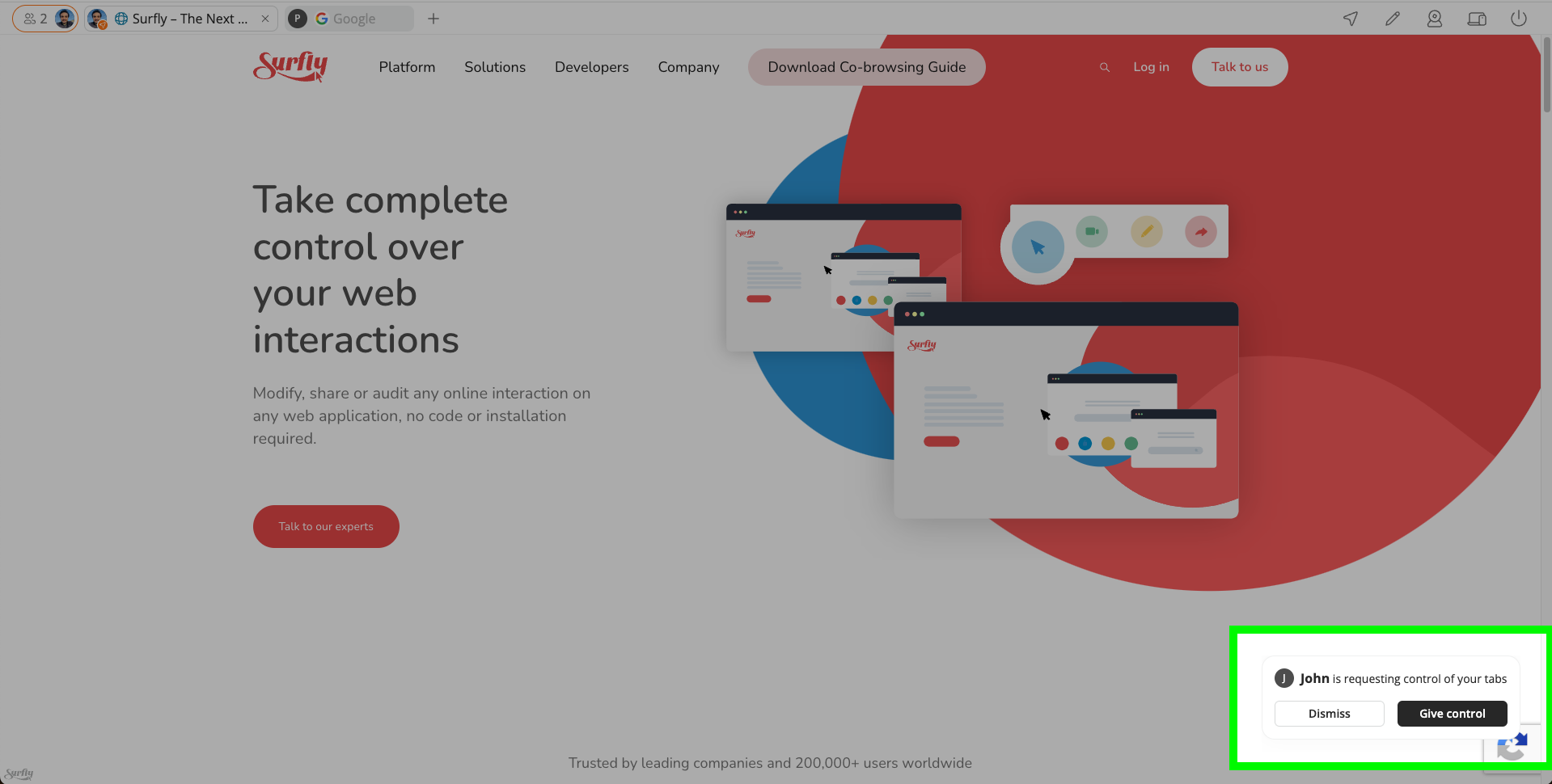 Not just this, but whenever your tab becomes active, you are in control of it immediately. Only with your permission can anyone interact with your tab(s).