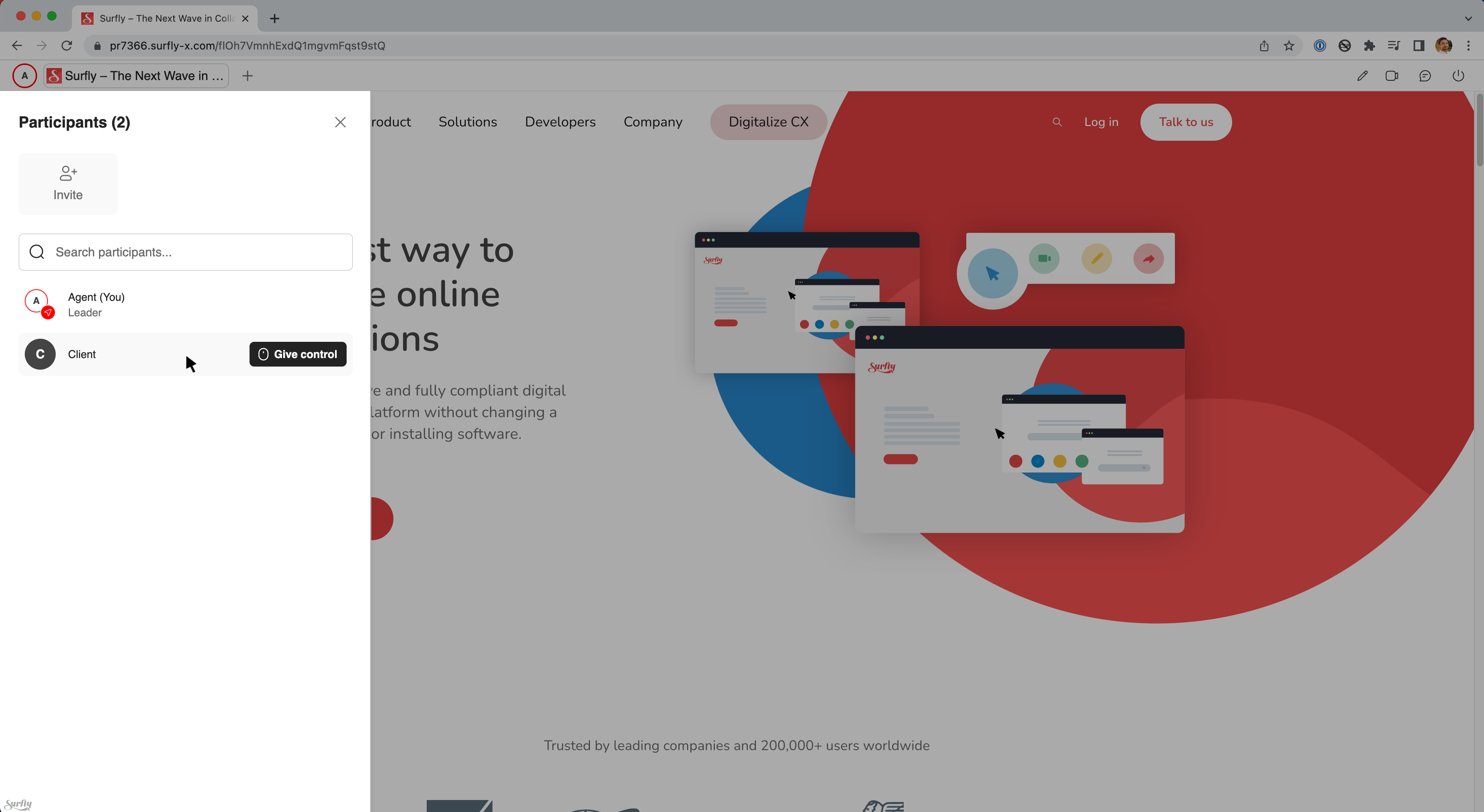 The buttons related to transfer of control will be made visible by hovering over the participant’s name