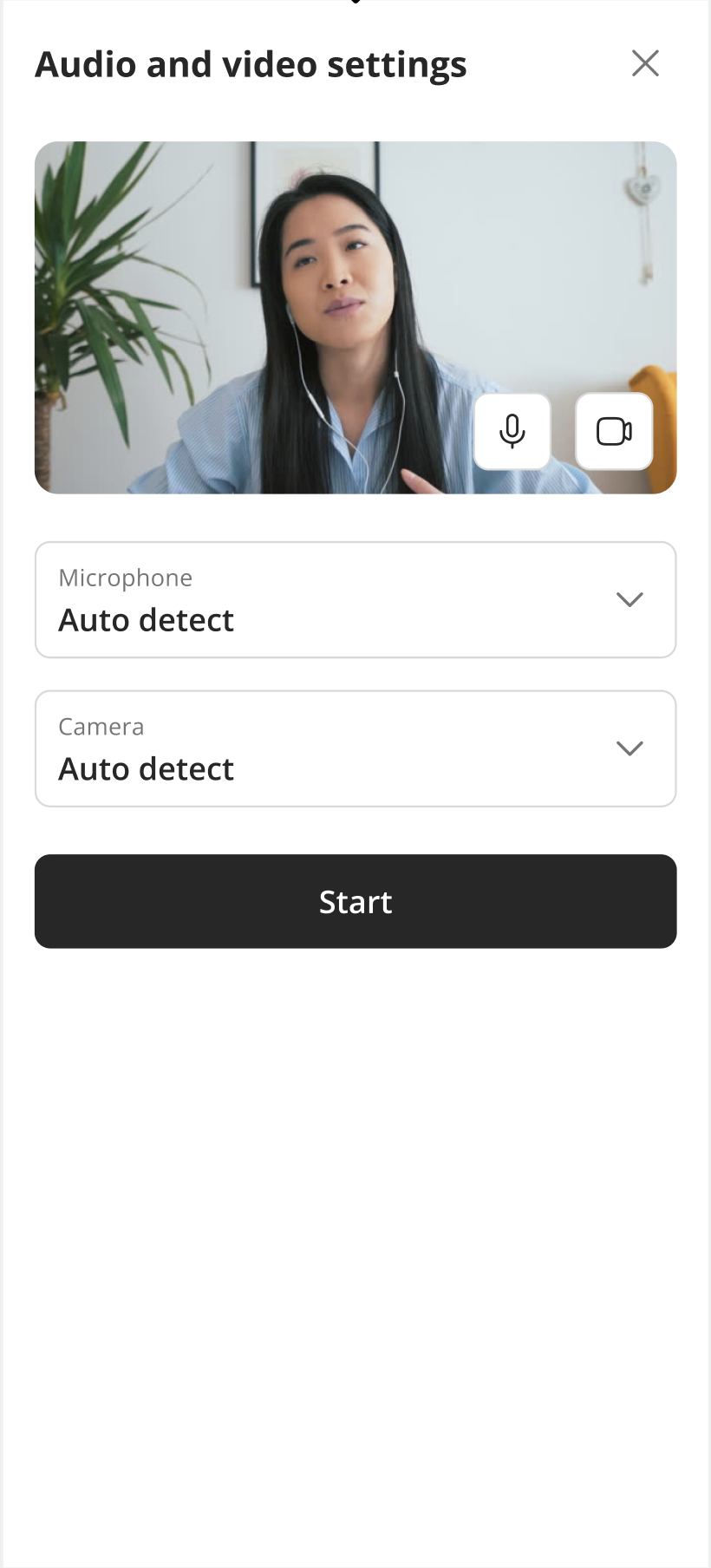It gives you the option of launching video chat or changing camera/mic settings by clicking on it. You can close the open modal anytime by clicking on the X in the top-right corner or clicking the “Cancel“ button.
