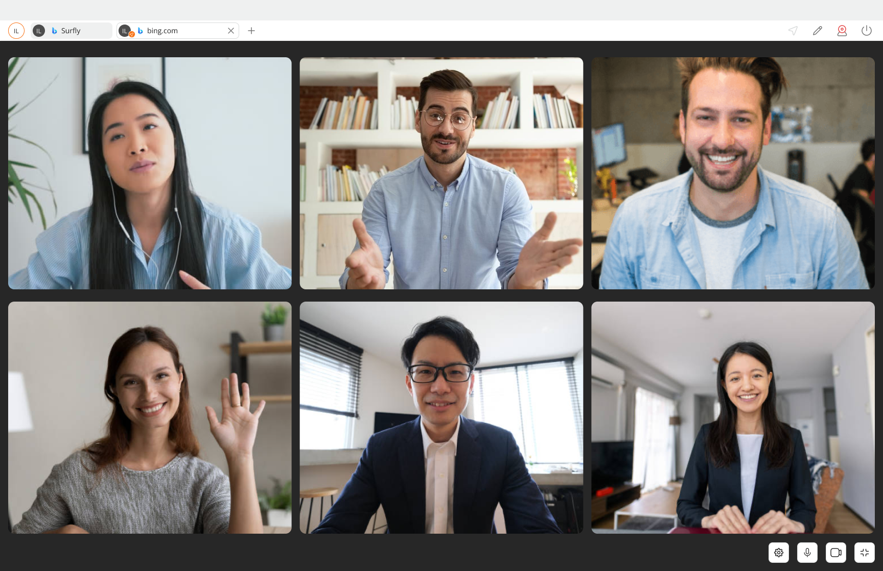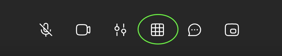 In full-screen mode, users have the flexibility to switch between the grid layout or spotlight mode. The grid layout displays all users in the session, while the spotlight mode highlights only the active speaker.